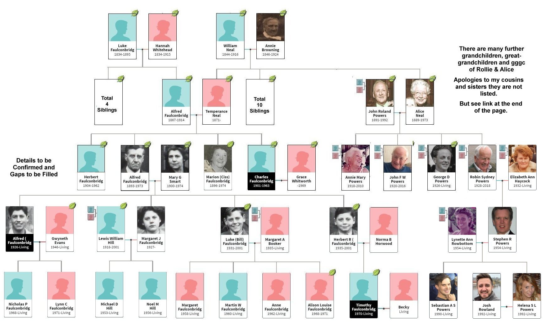 Acknowledgements Clearly this is simple. Pretty much all of the work here in uncovering the facts about Stone House Farm was done by Amanda but thanks also to my cousin Jo for getting more information from her dad, my Uncle Don. Huge thanks also to Becky Faulconbridge, Tim's wife, for filling in much of the background information and talking to Tim's Uncle Paddy who settled the question of when the Faulconbridges moved into Stone House Farm. Thanks also to my mum for nagging me to find out just where Stone House Farm is! And finally, thanks for the very kind hospitality shown by David and Peter - our hosts at Stone House Farm. Links Stone House Sales Brochure Full Descendant Tree for William Neal and Annie Browning Roly & Alice Descendants with Pictures Pictures of Roly and Alice Other Powers related Documents and Photos The Story of Uncle George Henry Parkes tree for Jack's great grandchildren in Australia